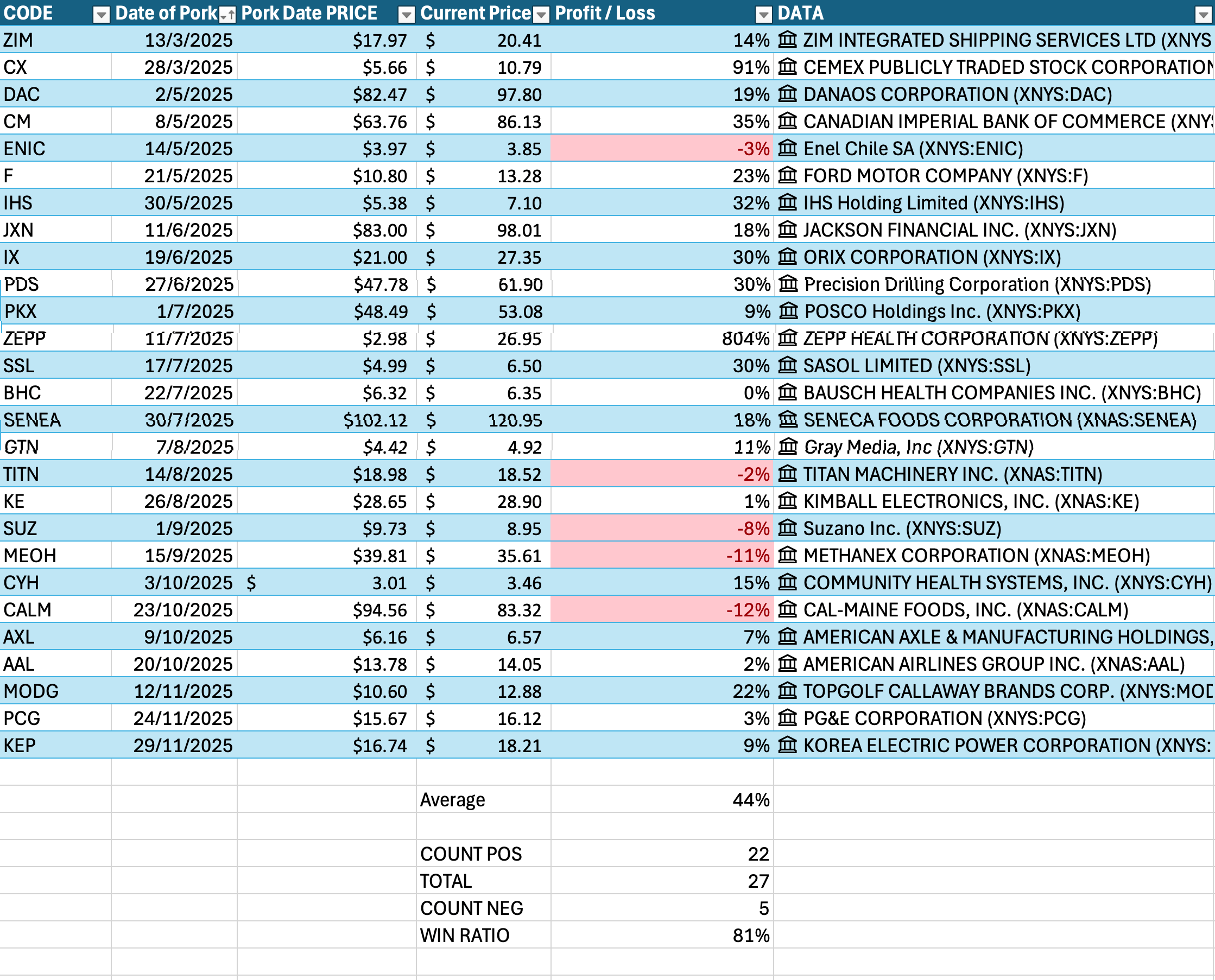 Cameron: somebody said. Somebody said, uh, this is a stock I’m more likely to short than buy. I was like, well, why don’t you do that? And we’ll compare notes in a couple of years. I don’t know. Look, looking at, um, the pulled porks that we, that I’ve done for the US show in the last year, uh, we’ve got about a 60% success rate on them.