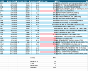 20 of them are in positive territory, seven are in negative territory, so it’s a win lose ratio of about 74% of the companies that we’ve, uh, covered so far this [00:45:00] year, which is pretty good.