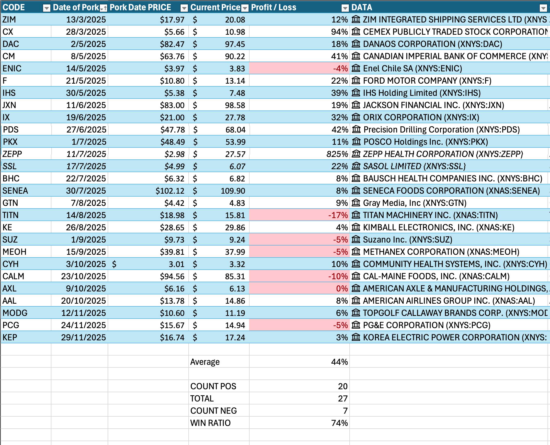Korean electric power that we talked about last week is up 3% since we covered those. But anyway, ORX Corporation, uh, IX is up 32%. Costco’s up 11%, you know, so there’s been a lot of opportunity even with these companies that. You know, we’ve all heard of Ford obviously, but um, I’d certainly never heard of Zep.