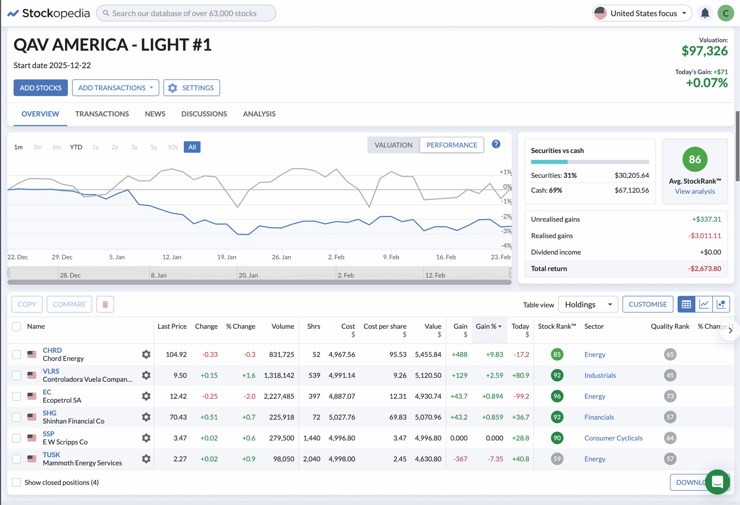 - We send you an email every Monday advising which stocks we are adding to our Light portfolio.